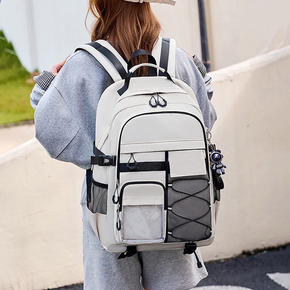 This preppy-style backpack is made of lightweight, wear-resistant and water-repellent fabric with a classic black and white color-block design, which is simple yet stylish, balancing practicality and appearance. It is an ideal choice for students' daily travel.