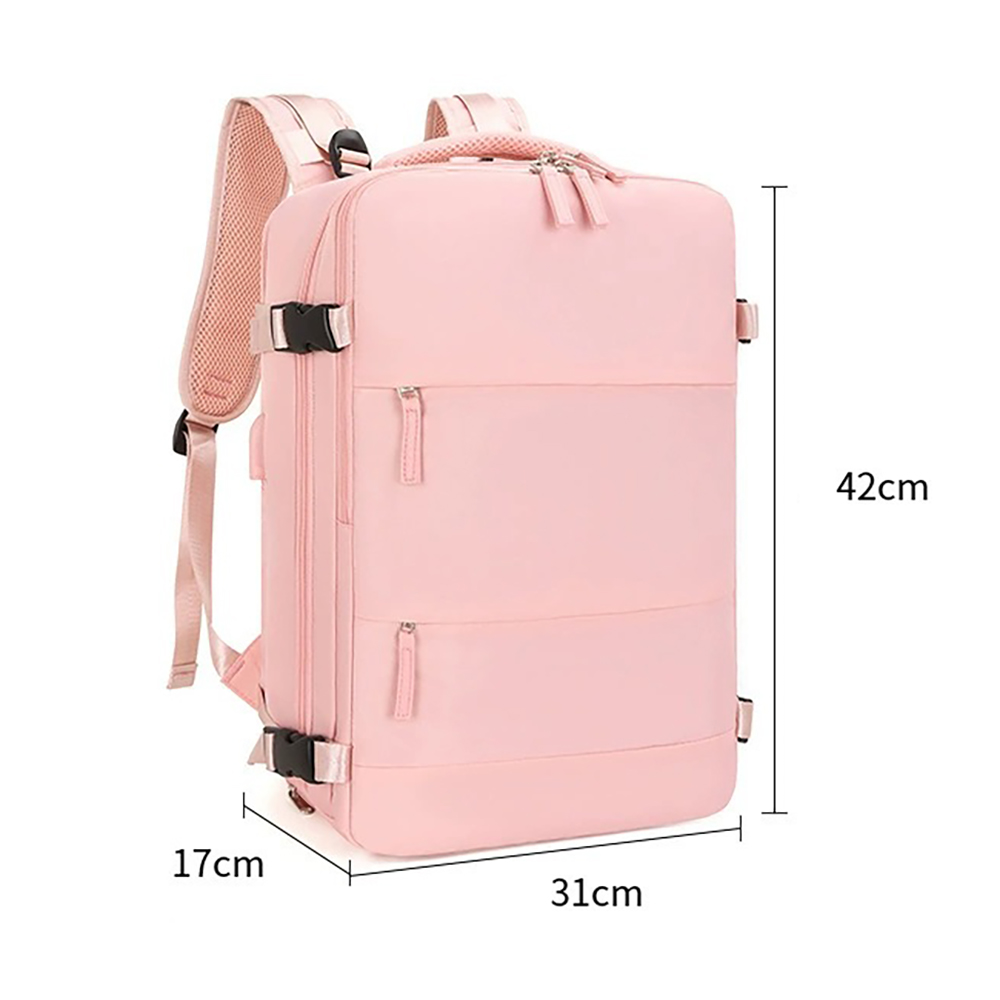 With dimensions of 31×17×42cm, it strictly complies with the carry-on luggage size standards of major global airlines, allowing direct boarding without checking in. Adopting a fully open suitcase-style opening design, the main compartment can flatly store clothes for 3-5 days of short trips, and is equipped with internal mesh pockets for organized storage. The independent shockproof digital compartment can hold a 15.6-inch laptop, tablet and power bank, effectively protecting electronic devices from bumps. The double-zipper front pockets allow quick access to documents, lipstick, earphones and other small personal items. Hidden side pockets are suitable for water bottles and folding umbrellas.It is equipped with an external USB charging port, which can charge your devices on the go by connecting to an internal power bank, solving battery life anxiety during travel. The back features breathable honeycomb mesh shoulder straps and a thickened decompression back panel, paired with adjustable chest and waist buckles to evenly distribute shoulder pressure for comfortable long-term carrying. The exclusive luggage strap on the back can be firmly fixed on the suitcase handle, freeing your hands for easy travel. Adjustable compression buckles on the sides can tighten or expand the backpack volume according to storage needs, adapting to different travel scenarios.