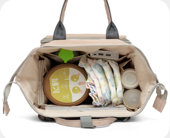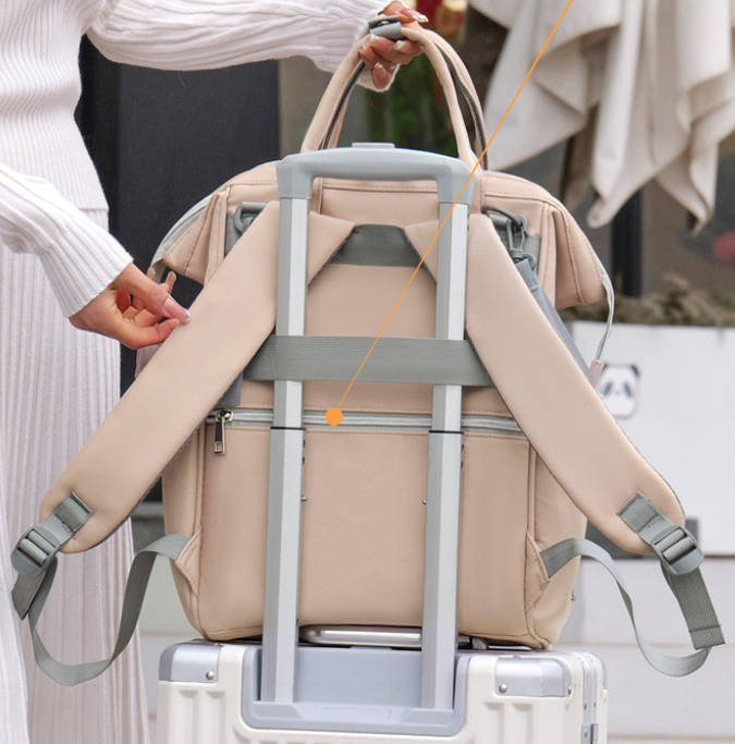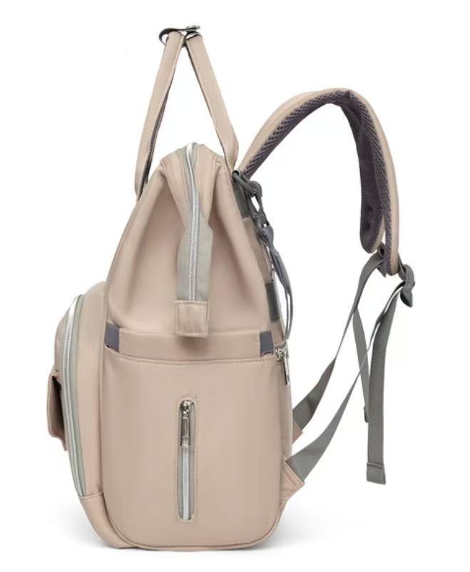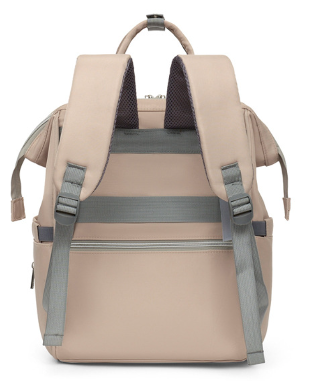 k neutral beige color complements any outfit, transitioning seamlessly from a baby bag to a casual travel or work backpack.