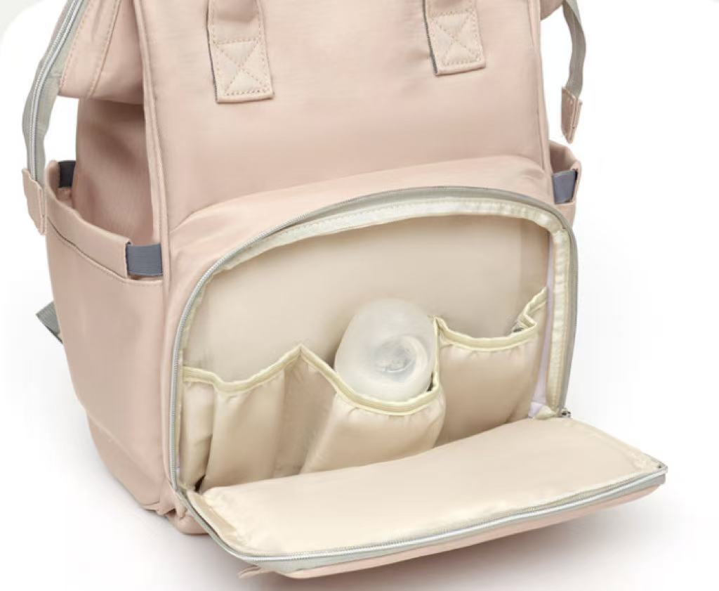 Insulated Bottle Pockets: Dedicated elasticized insulated pockets keep baby bottles warm or cold for hours, accommodating standard and wide-neck bottles.
