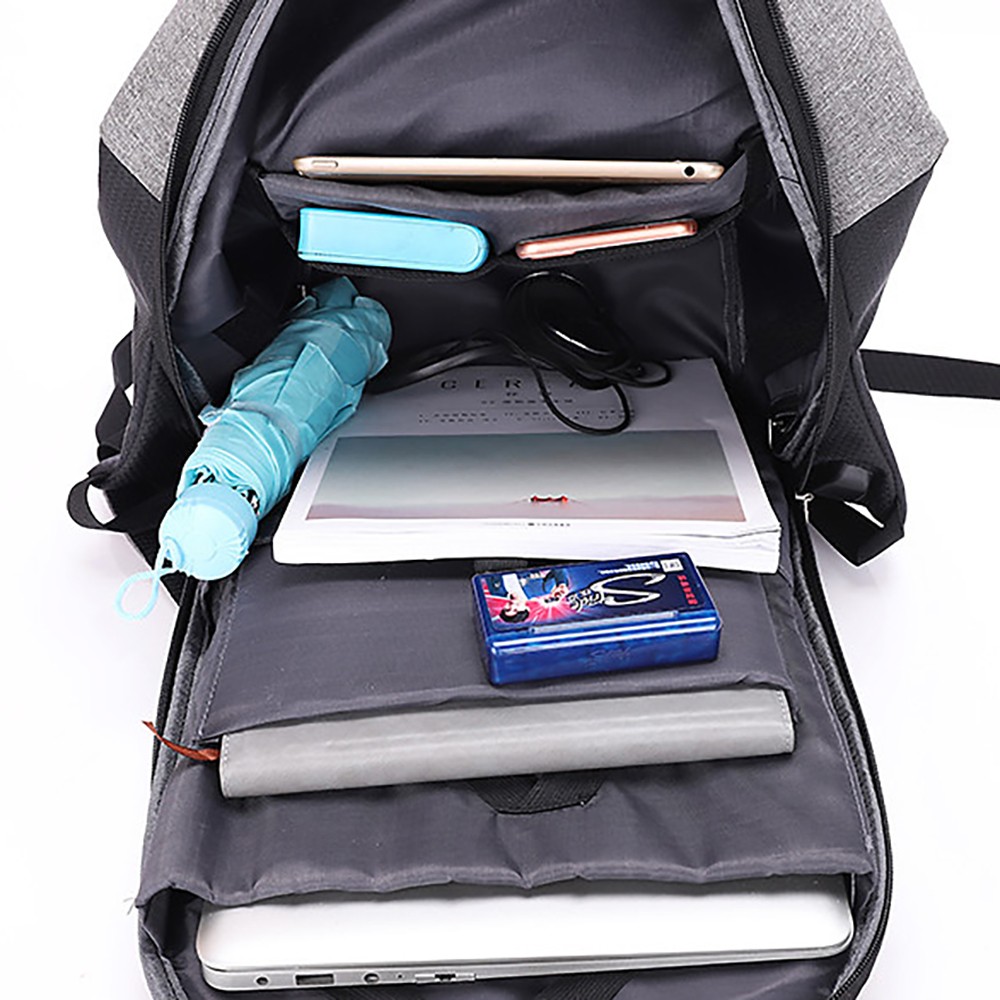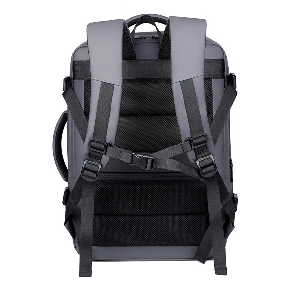 The bag is made of wear-resistant and waterproof high-density splash-proof fabric, which is tear-resistant and easy to clean, can effectively cope with complex travel environments such as rainy days, and protect internal items from moisture. The main compartment supports expandable design, which can flexibly expand the space according to travel needs, easily storing 17.3-inch laptops, clothes, documents and other items. The interior adopts a multi-compartment partition design, with an independent thickened shockproof computer compartment paired with an elastic fixing strap, which can stably protect electronic devices. It is equipped with multi-specification pockets such as pen holders, card slots, mesh pockets and tablet storage areas, which can orderly store umbrellas, power banks, documents, stationery and other personal items. The independent front zipper pocket allows quick access to mobile phones, keys and other small items, and the side pockets are suitable for water cups and folding umbrellas.The bag is equipped with an external USB charging port, which can charge your devices on the go by connecting to an internal power bank, completely solving the battery life anxiety during travel. The front is designed with ventilation holes to discharge moisture in the bag and keep items dry. The back adopts an ergonomic breathable decompression design, with thickened honeycomb mesh shoulder straps, chest buckles and a decompression back panel, which can disperse shoulder pressure, without stuffiness or shoulder pressure even when worn for a long time. The exclusive luggage fixing strap on the back can firmly fix the backpack on the suitcase handle, freeing your hands for easy travel. The reinforced top handle supports both hand-held and shoulder-back carrying methods, with flexible switching.