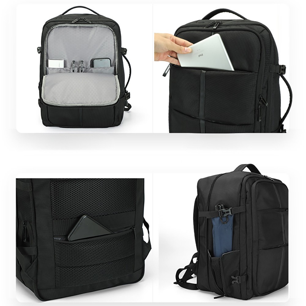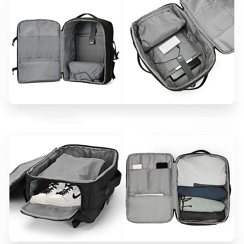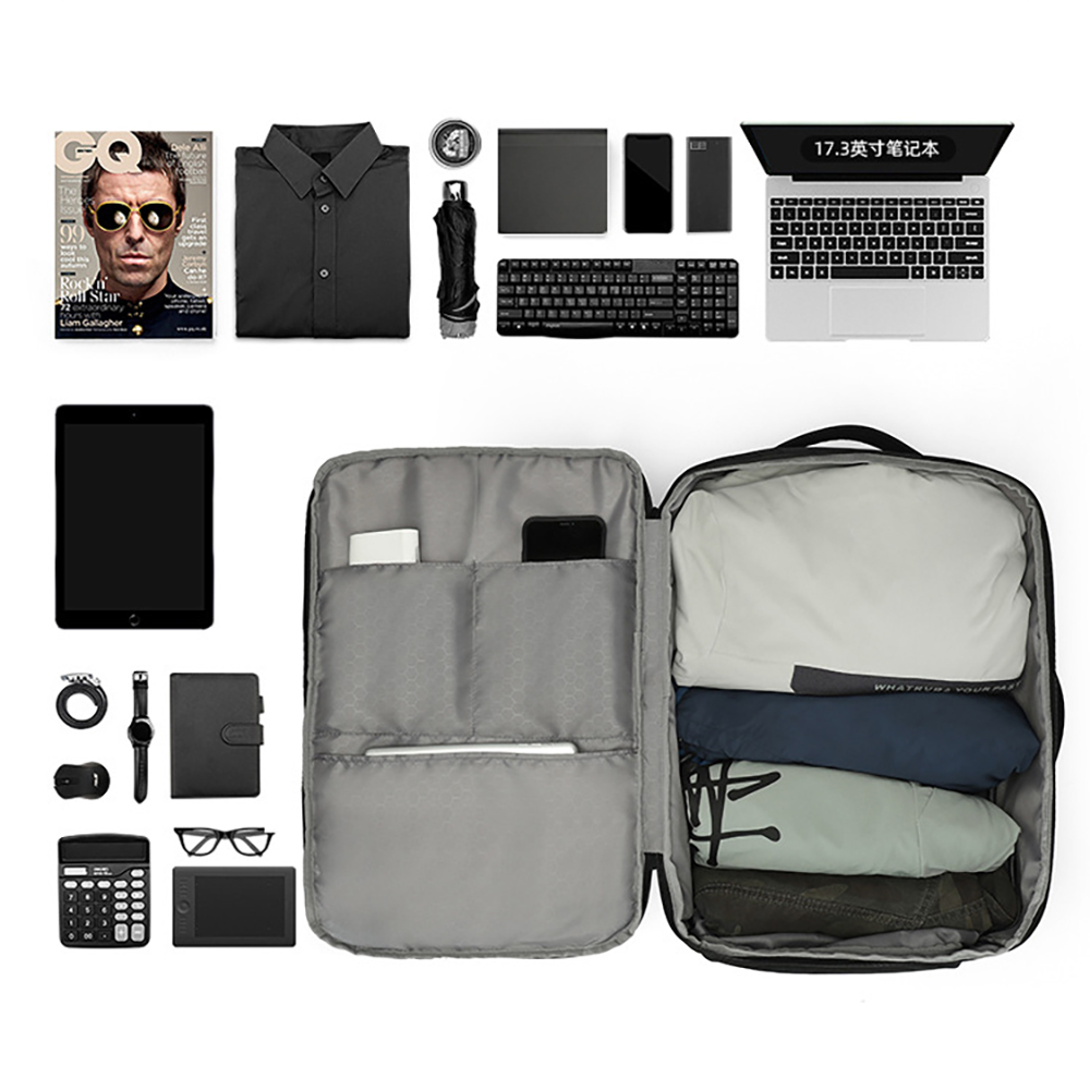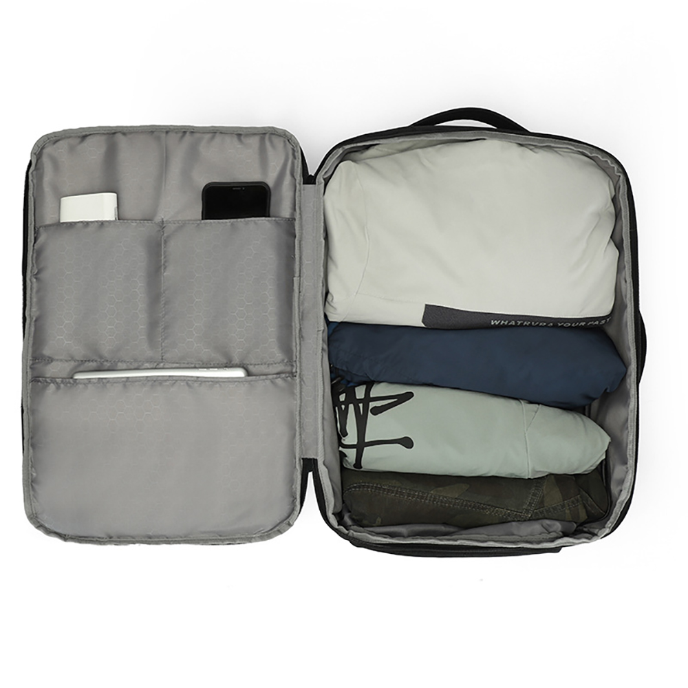 180° Fully Open Large-capacity Main Compartment: It can be fully opened like a suitcase, equipped with clothing fixing straps, which can easily hold 4-5 pieces of clothes, meeting the storage needs of 3-5 day short business trips;