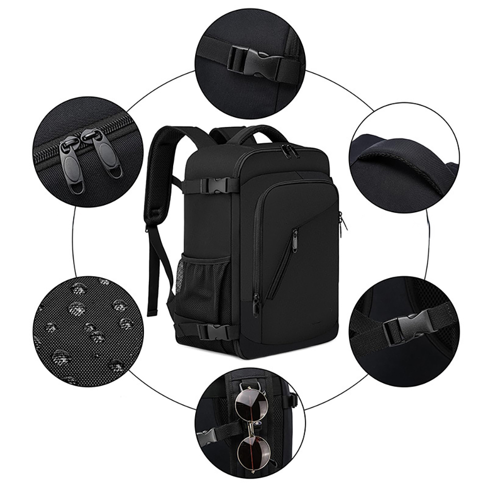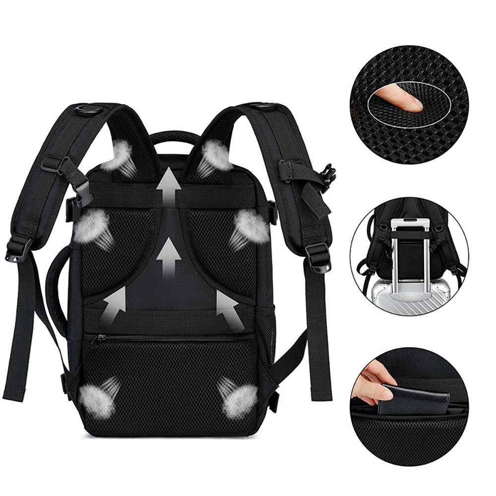 Luggage fixing strap: Exclusive fixing strap on the back, which can firmly fix the backpack on the suitcase handle, freeing hands and making business travel easier;