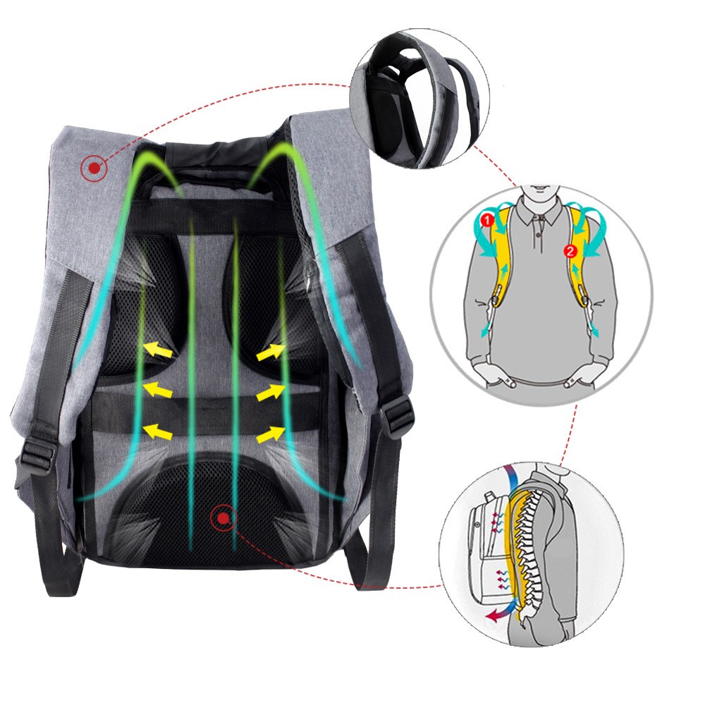 The front of the bag is integrated with a high-efficiency solar charging panel, which can use sunlight to power electronic devices outdoors. Equipped with a built-in USB charging port, it can charge your devices on the go by connecting to a power bank, completely solving the battery life anxiety during travel. Adopting a fully hidden anti-theft zipper design, there are no exposed zipper heads on the front, fundamentally preventing pickpocketing. The bag body is made of wear-resistant and waterproof oxford cloth, which is splash-proof and easy to clean, and can effectively protect internal electronic devices and documents on rainy days.The interior adopts a multi-compartment partition design, with an independent shockproof computer compartment that can stably hold a 15.6-inch laptop. It is matched with a front zipper pocket, multi-specification storage compartments, side water bottle pocket and exclusive power bank position, for organized storage. It can easily store laptops, tablets, documents, clothes, water bottles and other travel items.The back adopts an ergonomic breathable decompression design, paired with thickened honeycomb mesh shoulder straps and S-shaped decompression back panel, which can disperse shoulder pressure, promote air circulation, and will not make you sweat or press your shoulders even when worn for a long time. The exclusive luggage fixing strap on the back can be firmly fixed on the suitcase handle, freeing your hands for easy travel. The reinforced top handle can be switched between hand-held and shoulder-back freely.