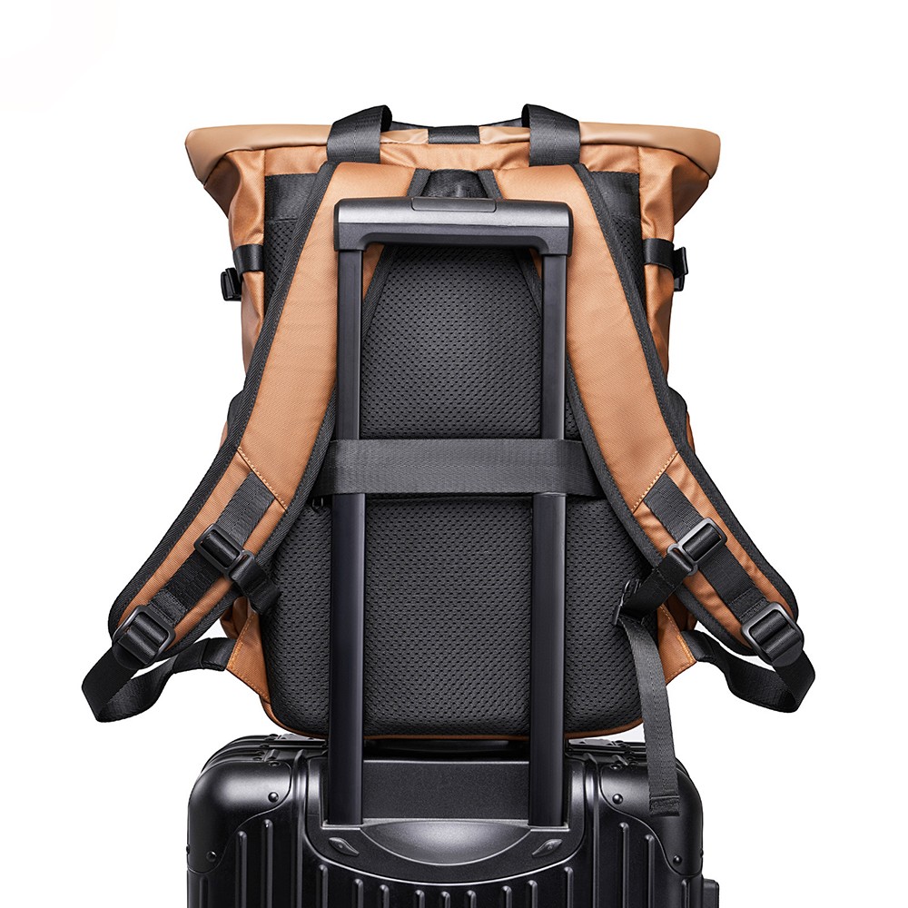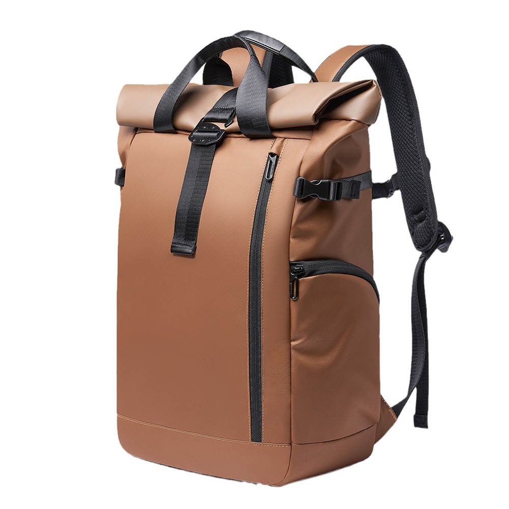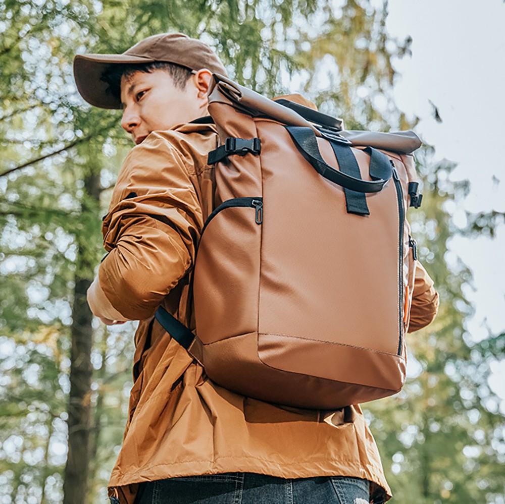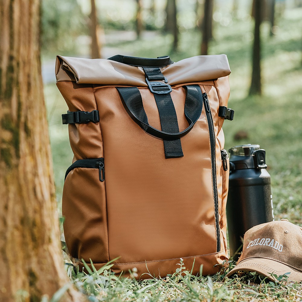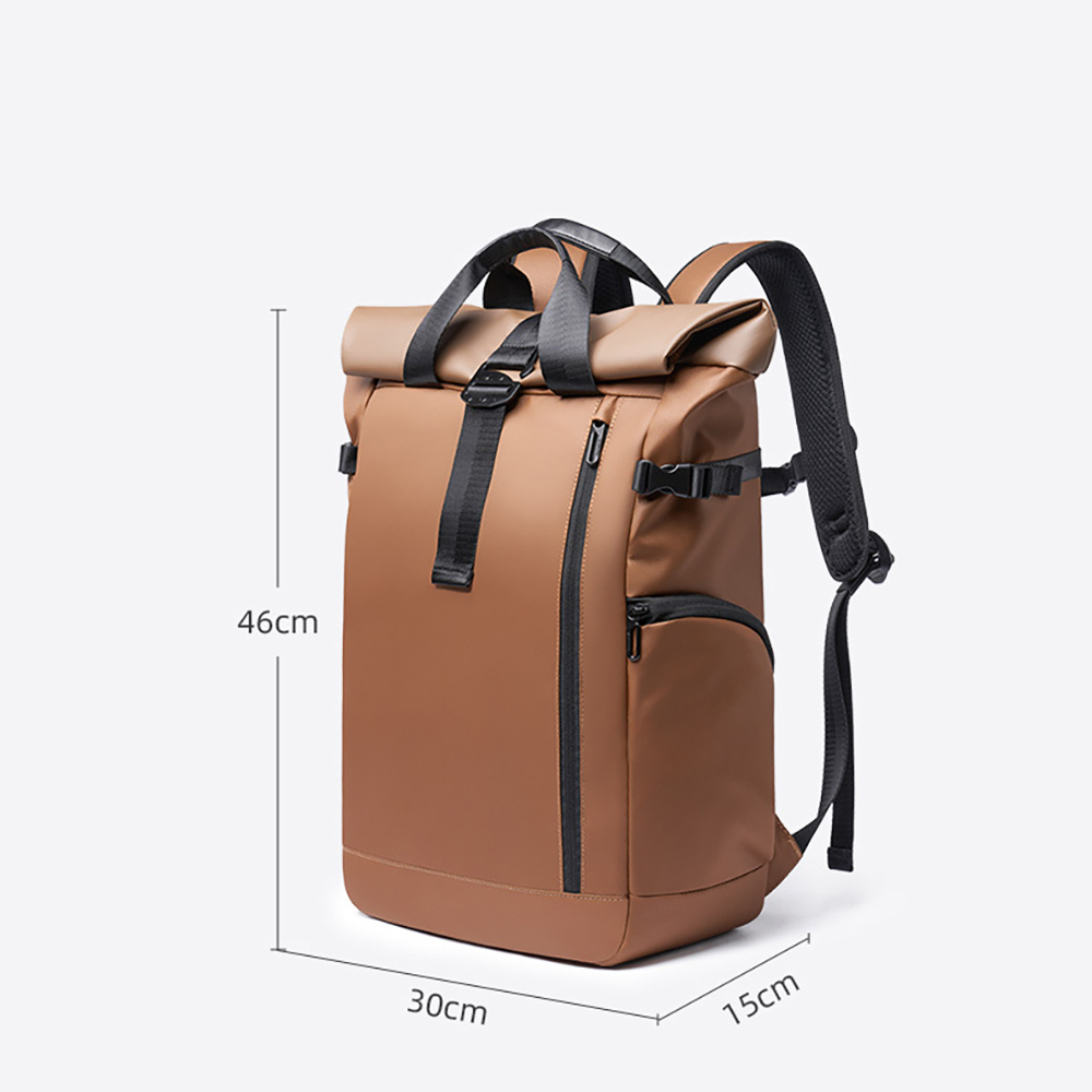 This business backpack is made of high-density water-resistant fabric with a sleek roll-top design, boasting premium texture and durability. Combining the practicality of outdoor travel with the professionalism of business commuting, it is designed for professionals and easily adapts to multi-scenario needs.