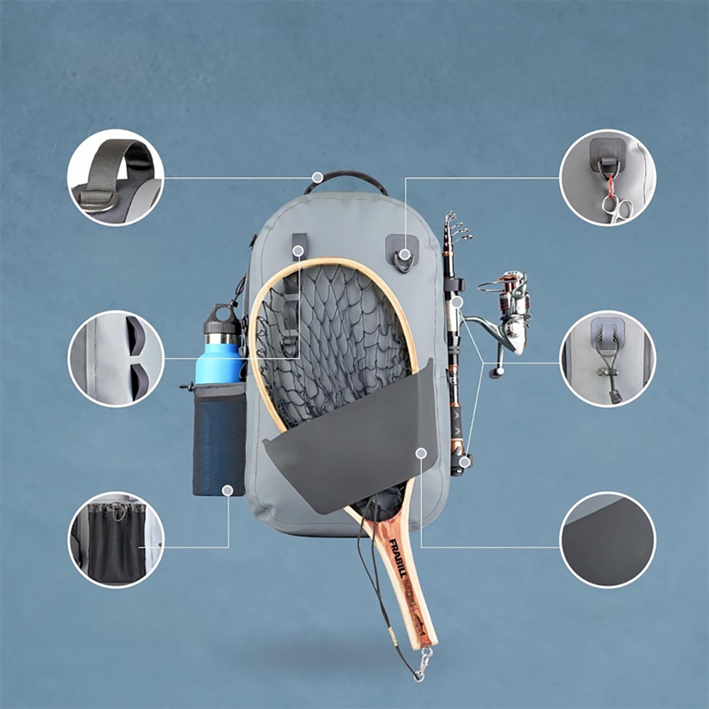 Designed for various outdoor fishing scenarios including stream fishing, offshore rock fishing, and bank fishing, this bag provides reliable waterproof protection and ample storage space for both short morning trips and multi-day camping fishing adventures. It lets you focus on the fun of fishing without worrying about your gear getting wet or lost. It can also double as a waterproof backpack for short hikes or river tracing trips, adapting to a variety of outdoor activities.