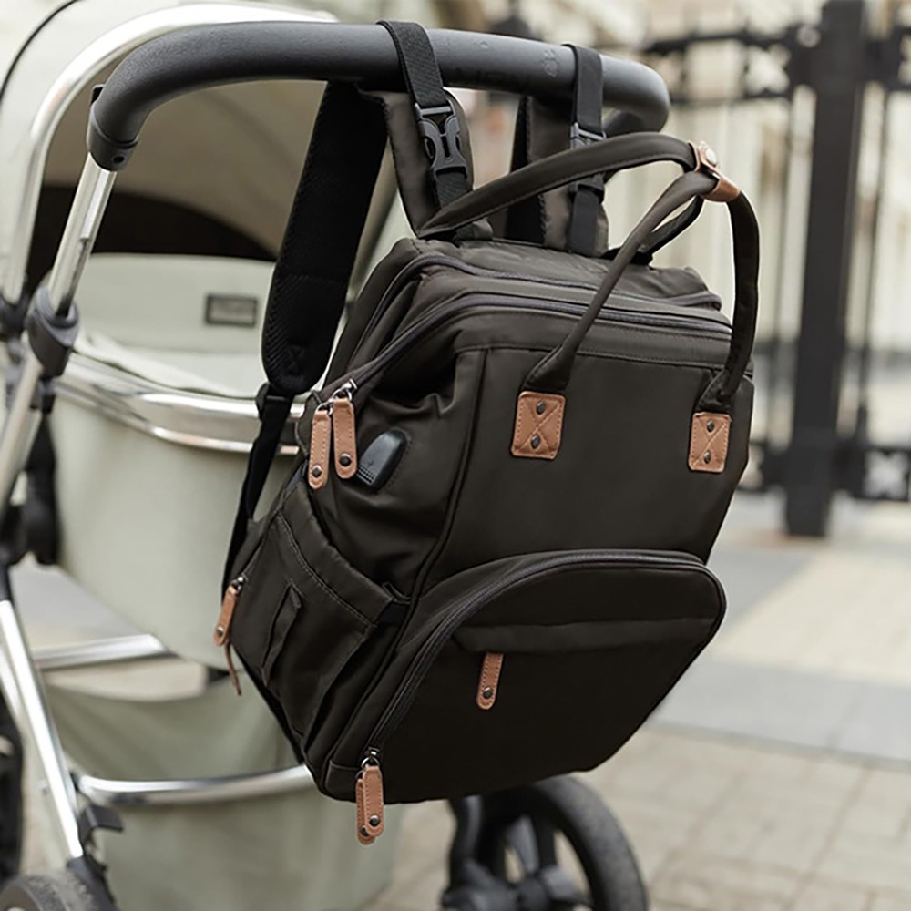 Main Compartment: Features a wide opening with multiple internal pockets to easily organize milk powder cans, baby clothes, and toys.