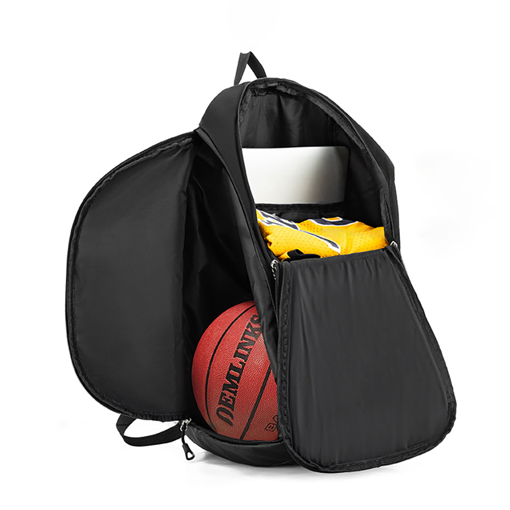 This basketball bag is specially designed for ball sports enthusiasts. It features a simple and practical design with excellent storage capacity and durability, which can meet the equipment storage needs of various sports trips.The bag is made of high-density wear-resistant Oxford cloth, which is waterproof and scratch-resistant. It can effectively resist wear and rain from outdoor venues and prolong the service life. The main compartment adopts a large-opening design with a spacious space, which can easily hold a standard basketball, football or volleyball, as well as sports jerseys, shorts, protective gear and other equipment. There is a special breathable shoe compartment inside, which can store sports shoes separately to avoid peculiar smells caused by contact between shoes and clean clothes and keep the bag tidy. There are multiple small pockets and zipper hidden pockets inside for storing mobile phones, keys, access cards, towels and other small items, and the side mesh pockets can hold water cups or sports kettles for easy access.The shoulder straps are designed with widened breathable sponge, which is soft and decompressive, without obvious pressure even when carried for a long time, and the length can be freely adjusted according to the body shape. The reinforced top hand strap is sturdy and durable, supporting hand-held and single-shoulder carrying with flexible ways. The bag has tight and firm stitches, smooth zippers that are not easy to jam, and the overall structure is stable, suitable for long-term and high-frequency use.It is suitable for basketball training, campus sports activities, outdoor ball games, gym sports, team event travel, daily sports equipment storage and other scenarios, suitable for students, professional athletes and sports enthusiasts.