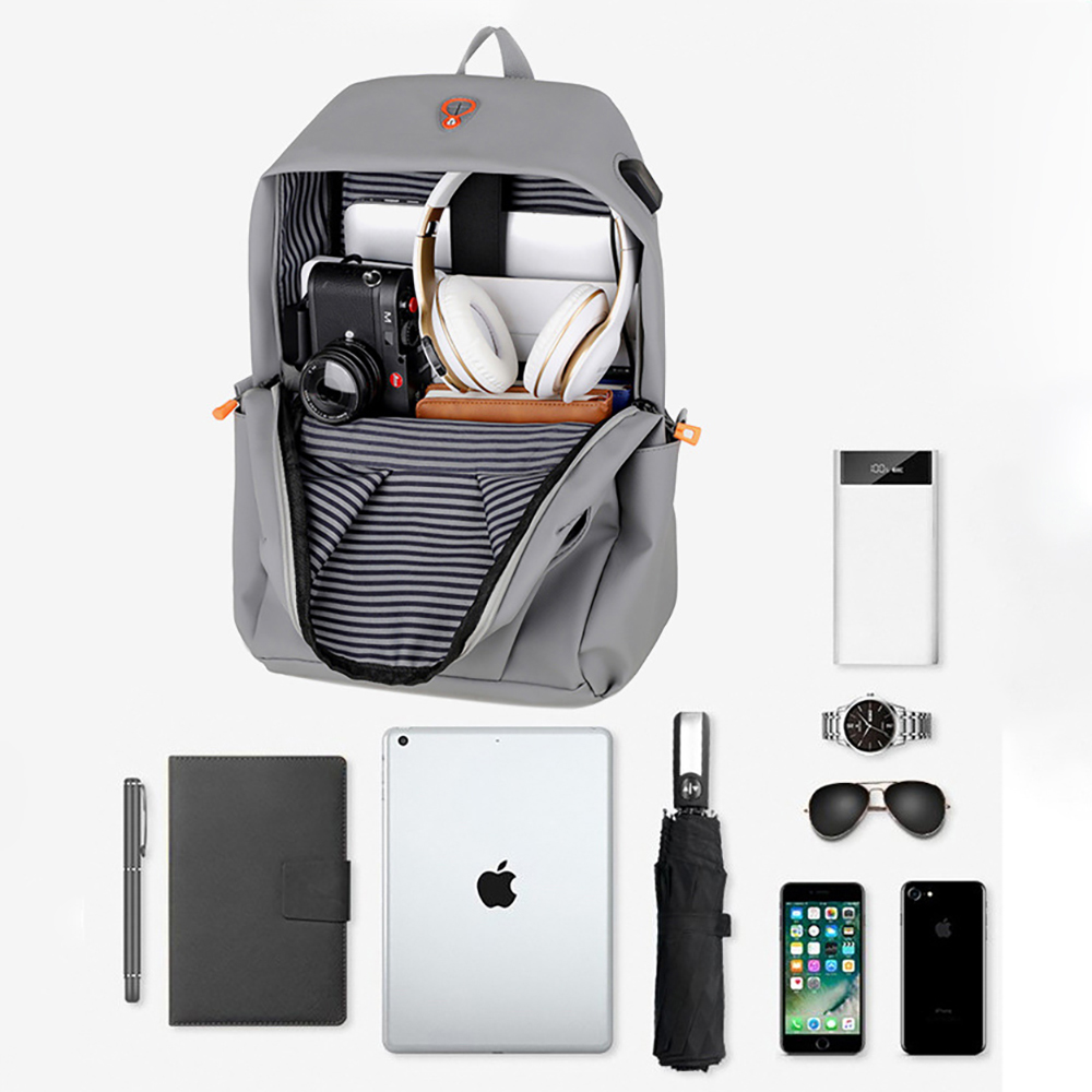 This smart Business Bag is specially designed for modern professionals and students. Featuring a minimalist light gray waterproof fabric with eye-catching orange zipper pulls, it perfectly combines business texture, intelligent functions and practical design, suitable for all-scenario daily travel needs.