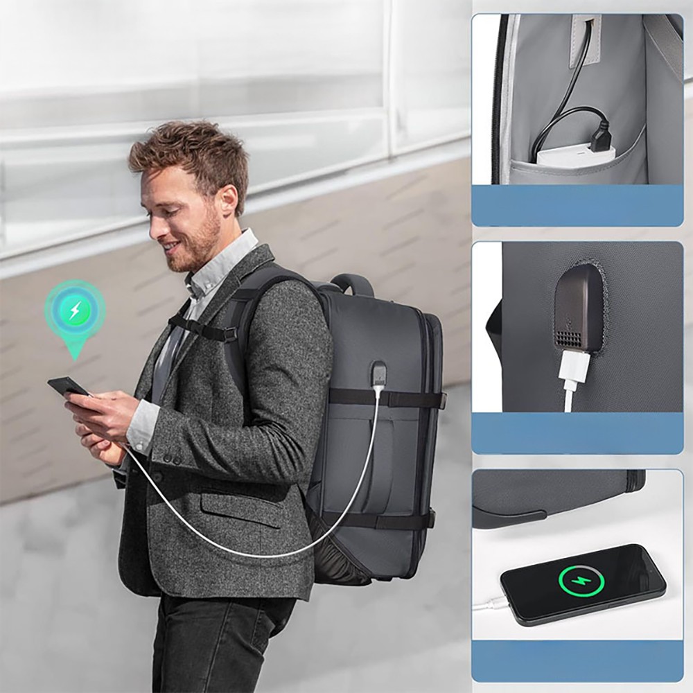 3.External USB Charging Port: Built-in charging cable with an external USB port. Connect a power bank inside to charge your phone while walking, solving power anxiety during commuting and business trips.