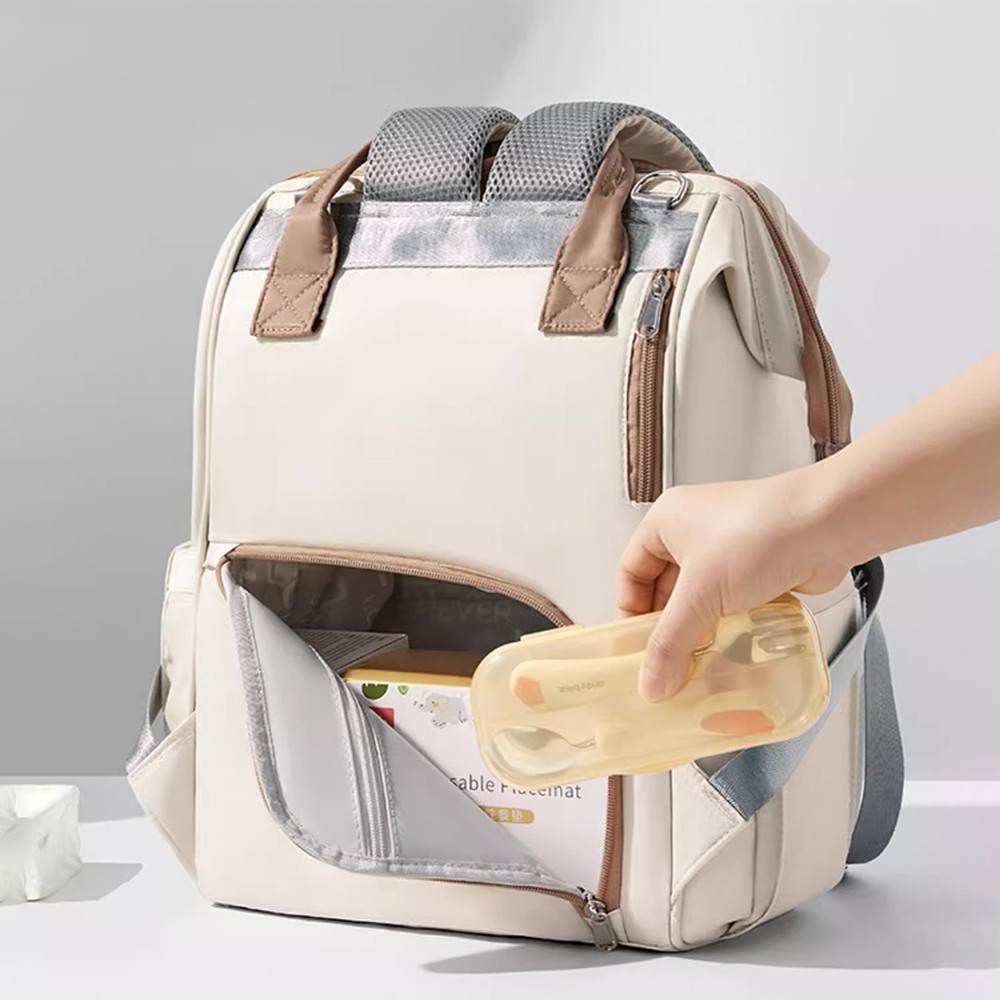 While strolling in the park or shopping at the supermarket, simply attach the backpack to the stroller handle using the dedicated hooks. No need to carry it on your back, making every outing with your baby elegant and stress-free.