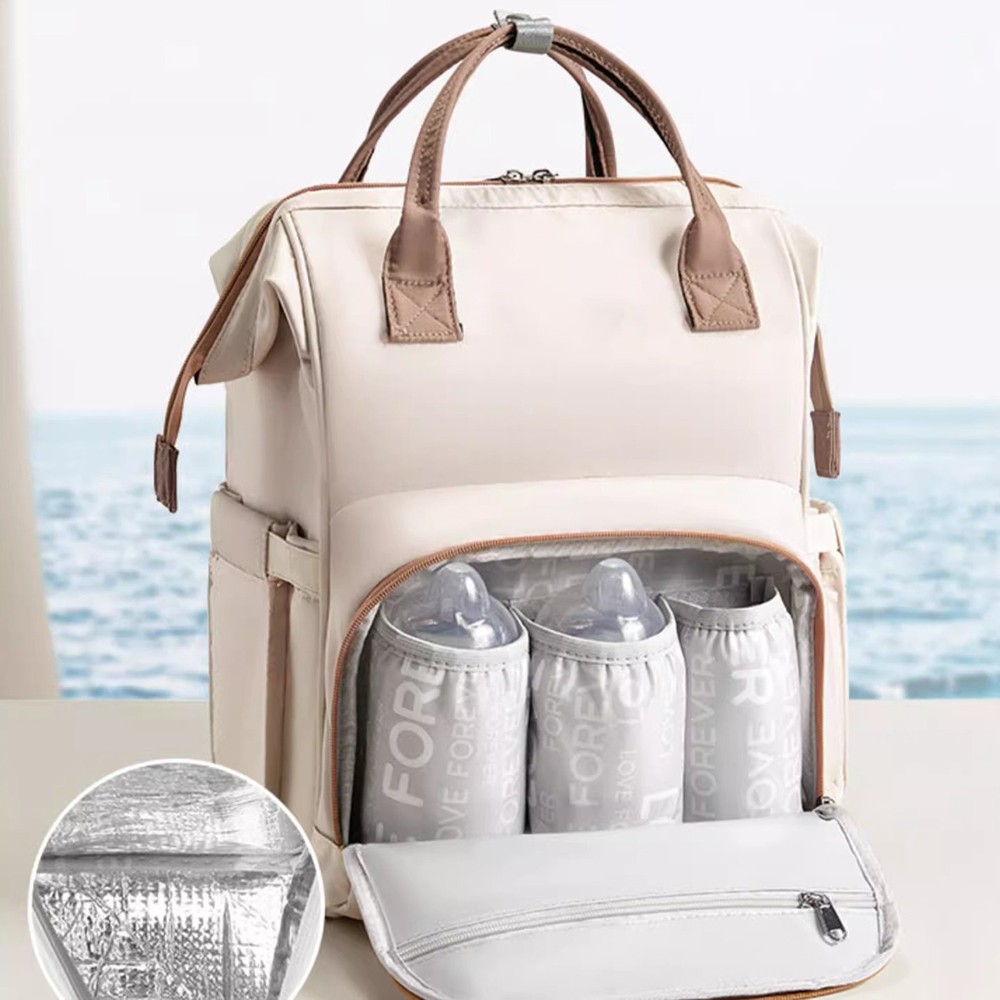 The front pocket includes three thickened aluminum foil-lined bottle holders to effectively maintain the temperature of milk. The side zipper allows for quick access without having to open the main compartment.