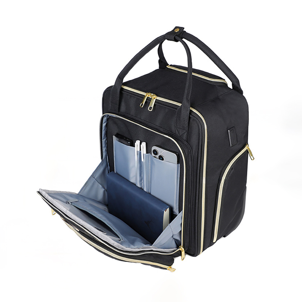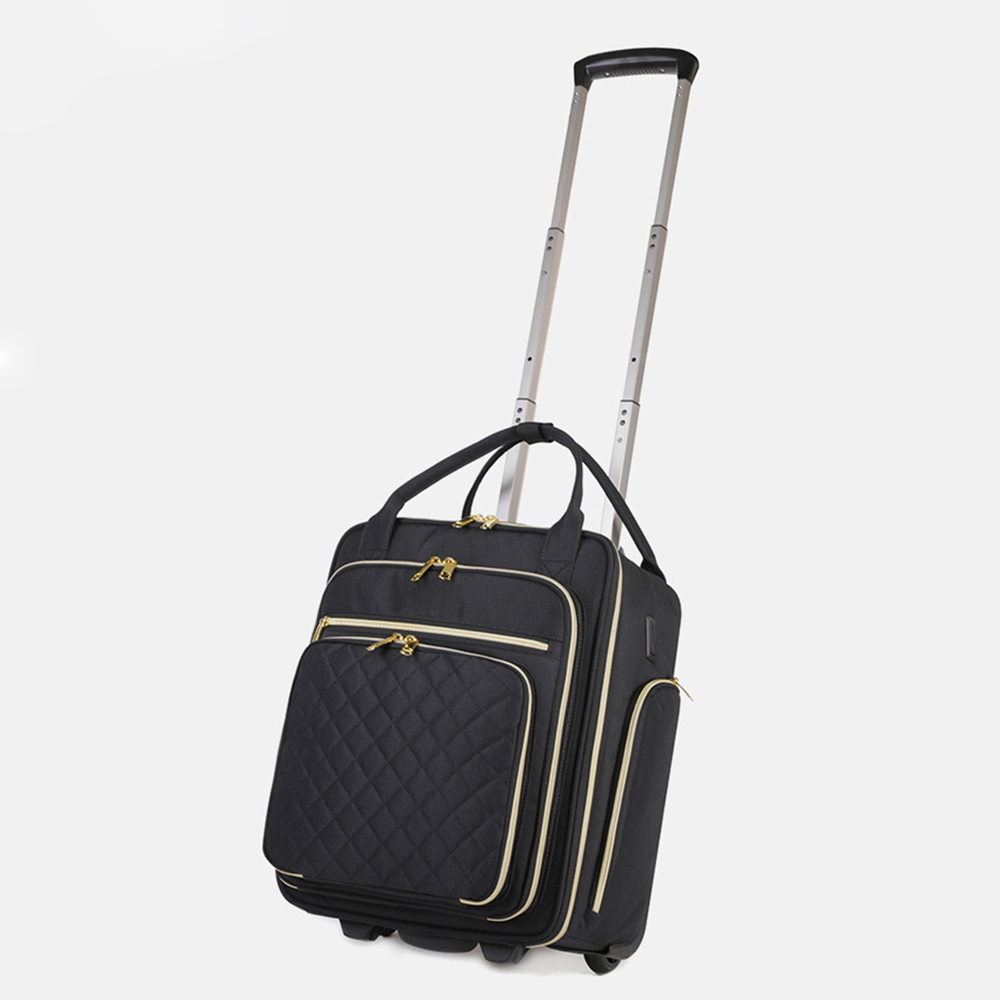Smooth aluminum retractable handle with silent universal wheels at the bottom, designed to take the weight off your shoulders.