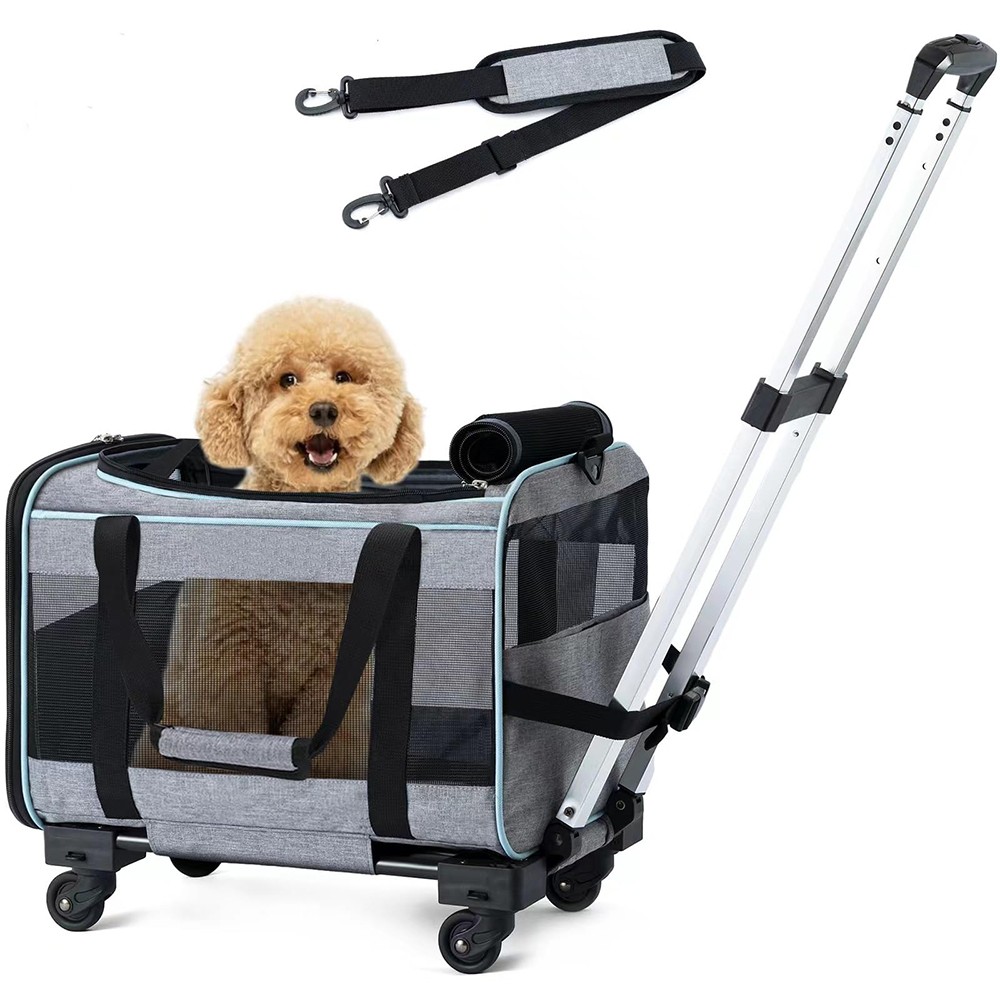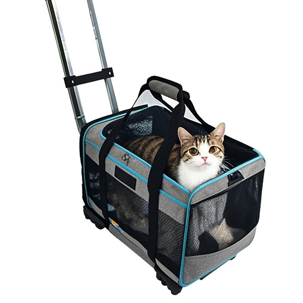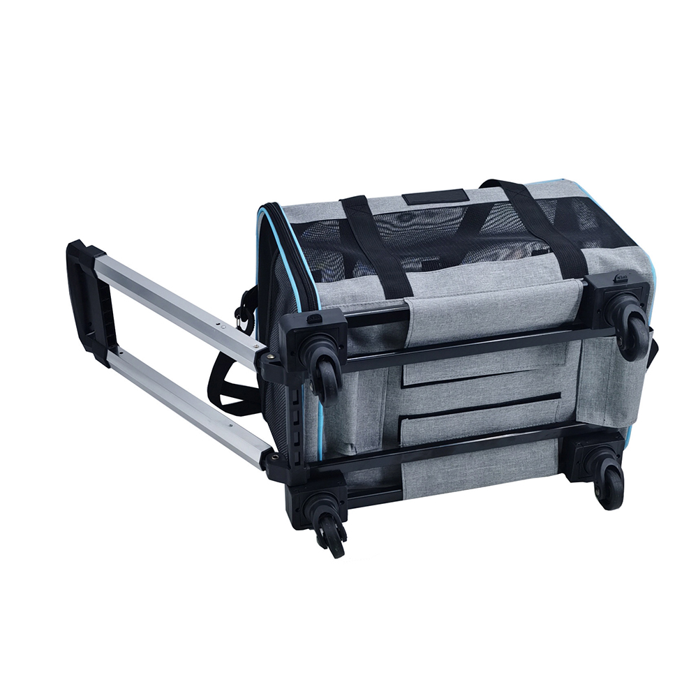 This multi-functional pet travel Pet Bag with universal wheels is specially designed for small and medium-sized cats and dogs. It perfectly combines airline-approved breathable design, multi-form carrying methods and stable structure, solving the three major pain points of fatigue, stuffiness and safety when traveling with pets, making traveling with pets easier, safer and more comfortable.