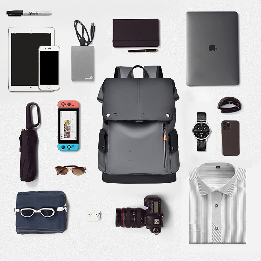The bag is made of high-density water-resistant fabric, which is wear-resistant and tear-resistant. The water-repellent treatment can easily cope with sudden rainy days, protecting clothes and electronic devices inside from moisture. The low-saturation dark gray color scheme with flip-top design has clean and neat lines, simple yet textured, suitable for both formal and casual outfits, low-key and capable, adapting to various business occasions.