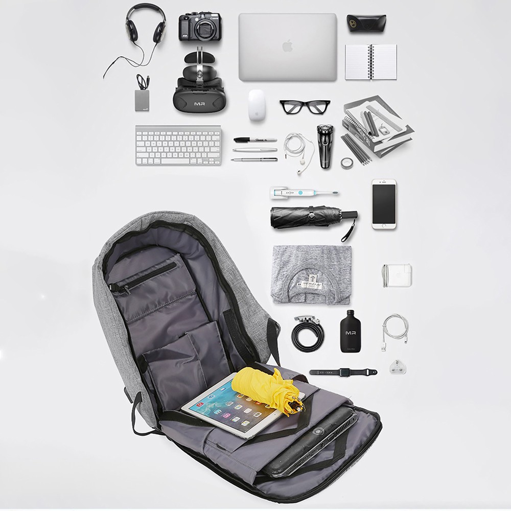 With dimensions of 43×30×13cm, it has a built-in thickened shockproof compartment that can stably hold a 15.6-inch laptop. Adopting a fully hidden side-opening zipper design, there are no exposed zipper heads on the front, effectively preventing pickpocketing. The bag body is made of wear-resistant and waterproof oxford cloth spliced with matte PU material, which is splash-proof and easy to clean, and can protect internal electronic devices and documents from moisture on rainy days.The interior adopts a multi-compartment partition design, with an independent computer compartment, file pocket, pen holder, card pocket, umbrella position and exclusive power bank storage position for organized storage. It is equipped with an external USB charging port, which can charge your devices on the go by connecting to an internal power bank, solving the battery life anxiety during travel. A high-brightness reflective strip is added on the front to improve visibility during night commuting and cycling, ensuring travel safety.The back adopts breathable honeycomb mesh shoulder straps and an ergonomic decompression back panel, which will not make you sweat or press your shoulders even when worn for a long time. The exclusive luggage fixing strap on the back can be firmly fixed on the suitcase handle, freeing your hands for easy travel. The reinforced top handle has strong load-bearing capacity, and can be switched between hand-held and shoulder-back freely.