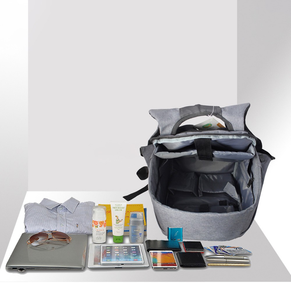 The front of the bag is integrated with a high-efficiency solar charging panel, which can use sunlight to power electronic devices outdoors. Equipped with a built-in USB charging port, it can charge your devices on the go by connecting to a power bank, completely solving the battery life anxiety during travel. Adopting a fully hidden anti-theft zipper design, there are no exposed zipper heads on the front, fundamentally preventing pickpocketing. The bag body is made of wear-resistant and waterproof oxford cloth, which is splash-proof and easy to clean, and can effectively protect internal electronic devices and documents on rainy days.The interior adopts a multi-compartment partition design, with an independent shockproof computer compartment that can stably hold a 15.6-inch laptop. It is matched with a front zipper pocket, multi-specification storage compartments, side water bottle pocket and exclusive power bank position, for organized storage. It can easily store laptops, tablets, documents, clothes, water bottles and other travel items.The back adopts an ergonomic breathable decompression design, paired with thickened honeycomb mesh shoulder straps and S-shaped decompression back panel, which can disperse shoulder pressure, promote air circulation, and will not make you sweat or press your shoulders even when worn for a long time. The exclusive luggage fixing strap on the back can be firmly fixed on the suitcase handle, freeing your hands for easy travel. The reinforced top handle can be switched between hand-held and shoulder-back freely.