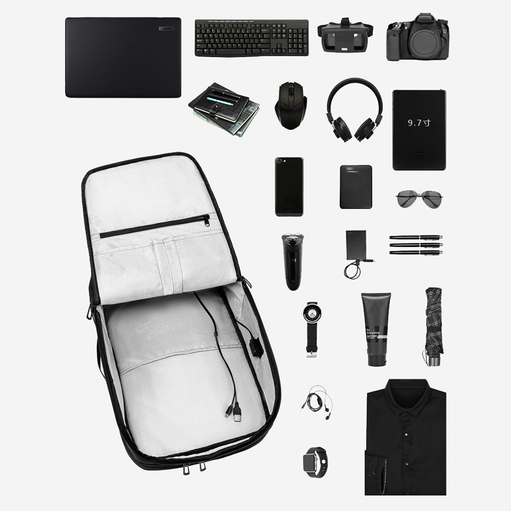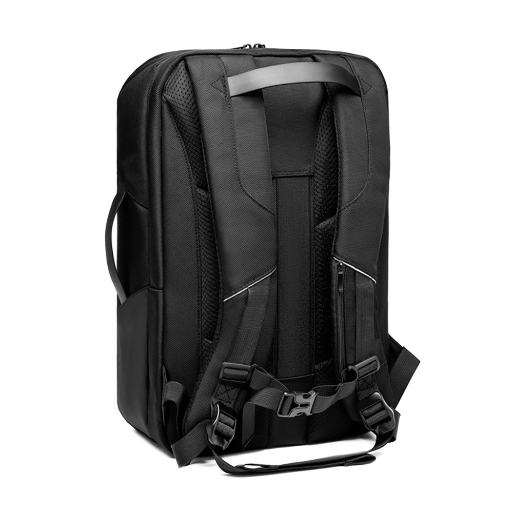 The main body of the bag is made of wear-resistant and high-density oxford cloth spliced with waterproof oxford fabric, which is tear-resistant, scratch-resistant and easy to clean. It can cope with complex environments such as outdoors and rainy days, protecting internal devices and documents from moisture. The main compartment is spacious and equipped with a thickened shockproof computer compartment that can stably hold a 15.6-inch laptop. Paired with an elastic fixing strap, it prevents device shaking and avoids collision damage; the interior adopts a scientific partition design, with multi-specification storage pockets including pen holders, card slots, file pockets, tablet storage areas and hidden pockets. It can orderly store keyboards, headphones, cameras, documents, power banks, umbrellas and other personal items, making storage more organized.The outside of the bag is equipped with a front zipper pocket for quick access to frequently used items such as mobile phones, keys and access cards; elastic side pockets are set on the sides to hold water cups and folding umbrellas. An external USB charging port is built into the side of the bag, which can charge devices on the go by connecting to a power bank stored inside, completely solving the battery life anxiety during travel. The back adopts an ergonomic breathable decompression design, with thickened honeycomb mesh shoulder straps, a widened decompression back panel and adjustable chest buckles, which can effectively disperse shoulder pressure, without stuffiness or shoulder pressure even when worn for a long time. The exclusive luggage fixing strap on the back can firmly fix the backpack on the suitcase handle, suitable for business travel needs; the reinforced top handle supports both hand-held and shoulder-back carrying methods, with flexible switching.